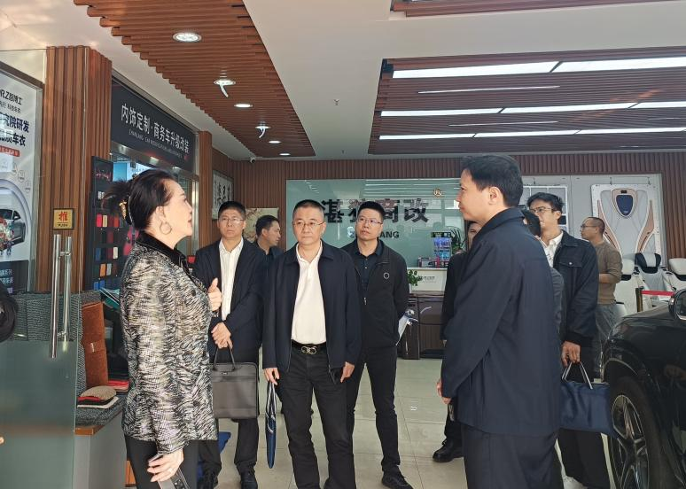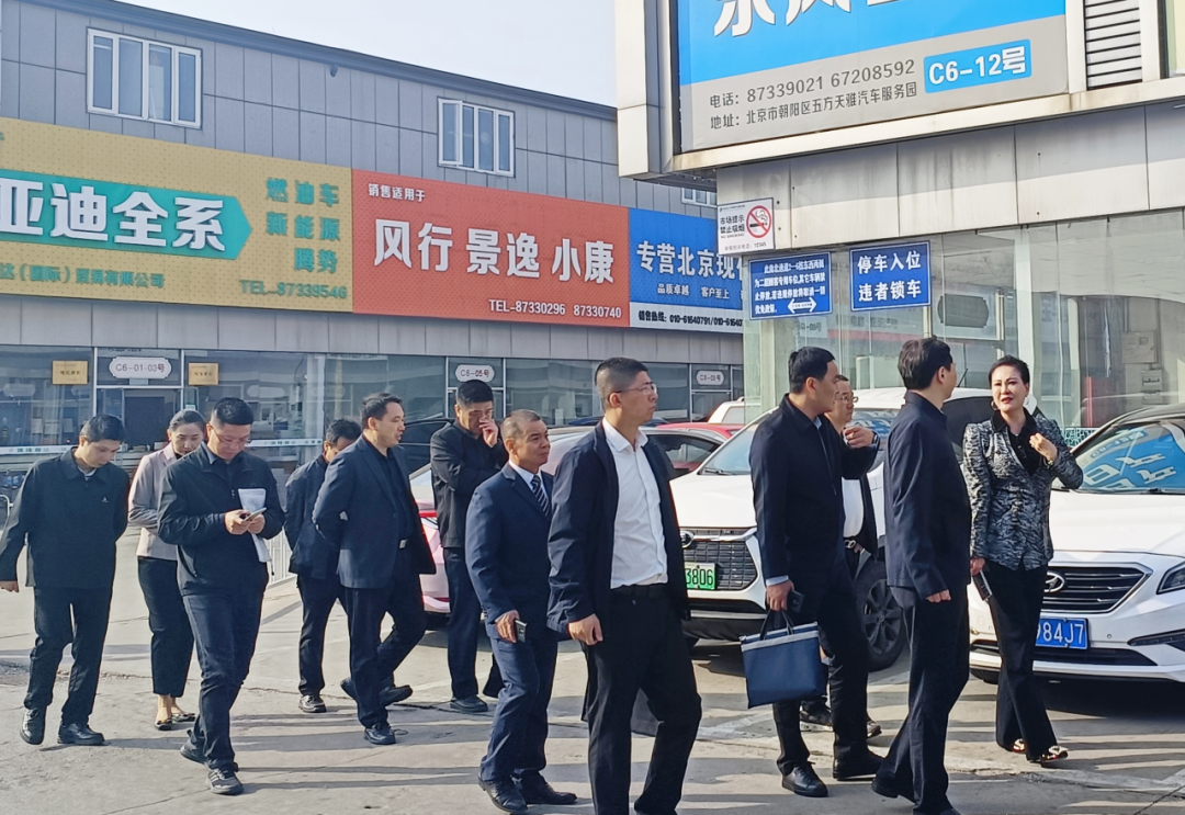 领导们一行首先参观考察了园区汽车美容装饰、汽车改装、汽车配件等经营区商家,五方天雅汽车服务园执行董事赵梦、总经理孙军分别对园区的经营产品分区、车主需求和商家经营模式进行了详细的介绍。