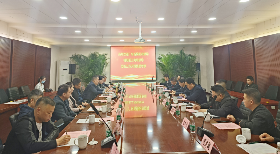 广东省揭阳市人民政府副市长刘鹏详细介绍了揭阳市地理位置、经济发展、支柱产业、国际物流、网络电商、服装服饰、交通运输等情况,尤其对汽车服务产业的发展、布局、规划、需求等做了详细的阐述。希望能向五方天雅集团领导了解关于汽车服务产业的发展情况,就揭阳市发展汽车服务产业向五方天雅集团程文龙董事长进行沟通交流。